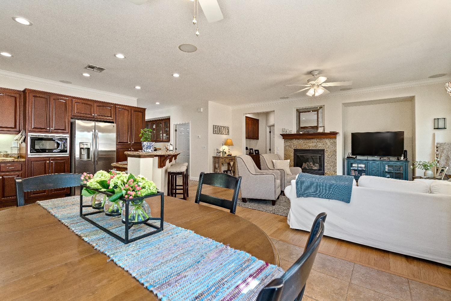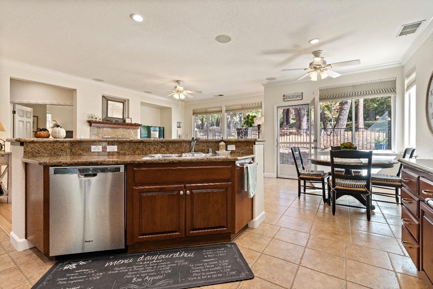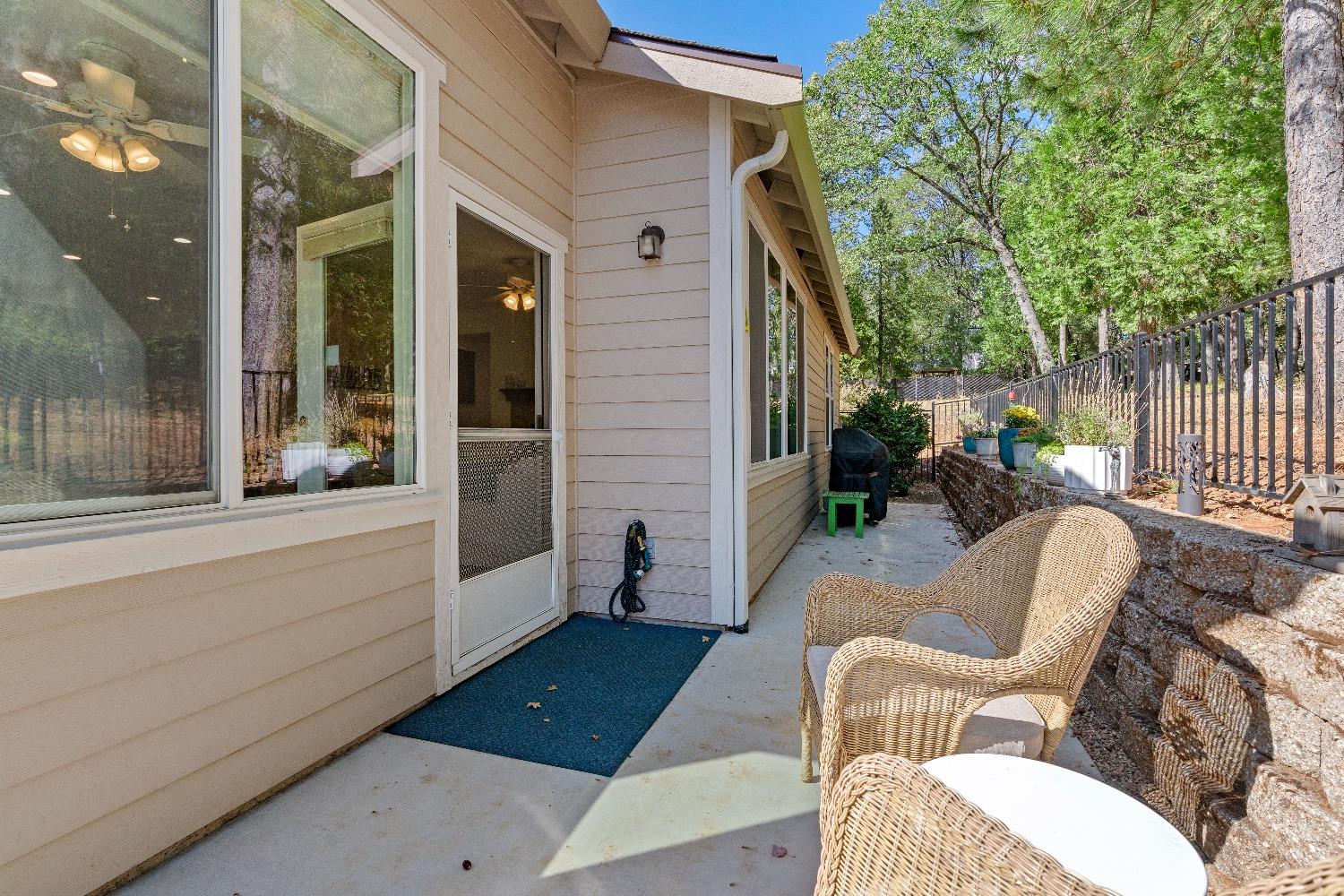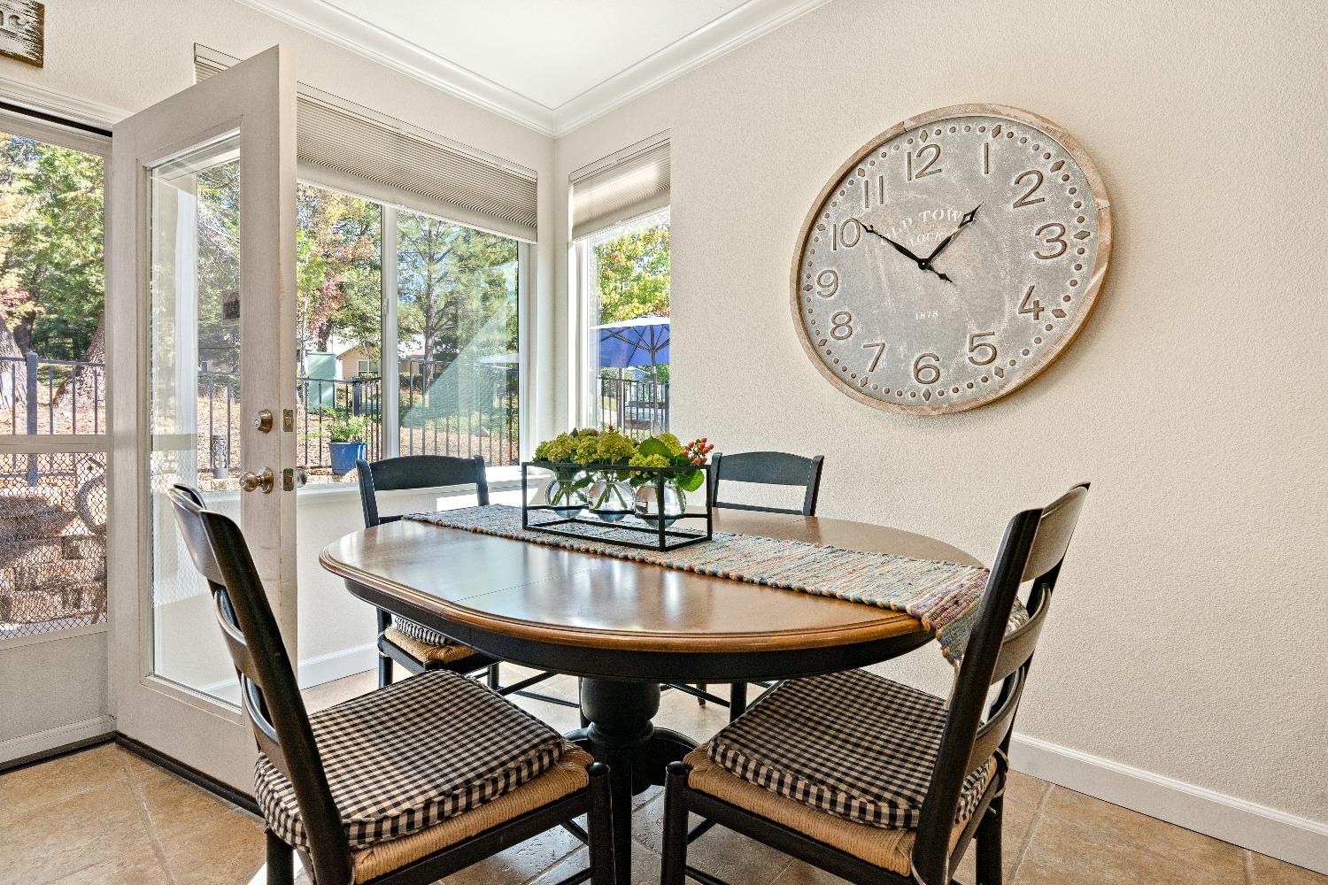 Immediately feel the warmth of this spacious single level home. Thoughtfully updated, this exceptional home is located in Eskaton a premiere 55+ community. in Grass Valley. This lush beautifully maintained neighborhood is conveniently located between historic downtown Grass Valley and downtown Nevada City and just minutes to medical offices and hospitals, shopping, dining options, movie theaters, community activities and events, and easy access to highway 49. The open floor plan offers an upgraded kitchen with an abundance of cabinets, great room/dining area, a large formal dining room/office option, a spacious primary suite with a walk-in closet plus a roomy secondary bedroom with a guest bathroom nearby. The backyard features a roomy, fully fenced patio surrounded by lush greenery offering the perfect space for your pet or to relax or entertain family and friends. 2 Bedrooms, 2 Full Baths Approximately 1592 Sq. Ft. Approximately 5227 Sq. Ft. Lot Built in 2003 Attached 2 Car Garage with built-in storage Generous open floorplan Roomy Kitchen with stainless appliances and lots of cabinets Formal Dining Room/Office/Den option Large built-in Buffet Indoor Laundry Room with storage Cozy gas fireplace Solid surface flooring throughout.