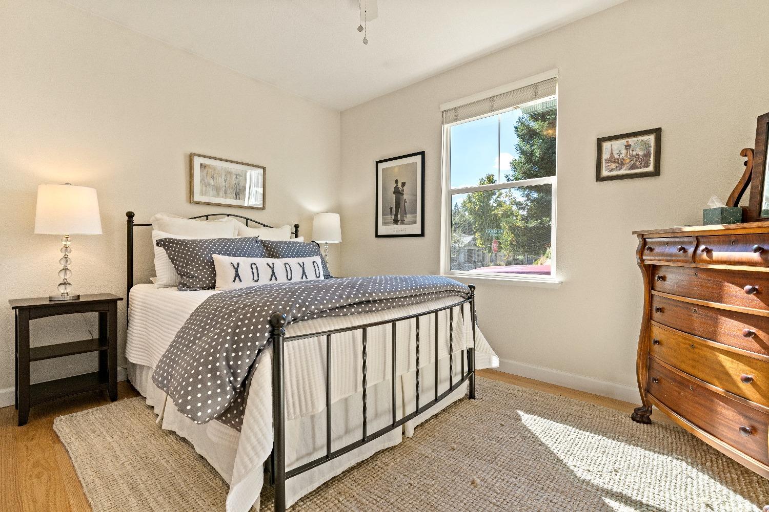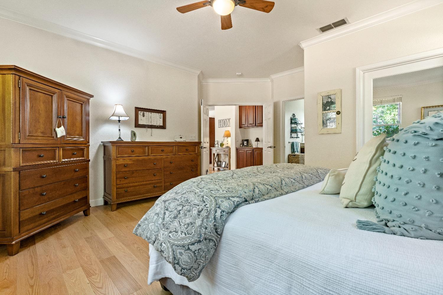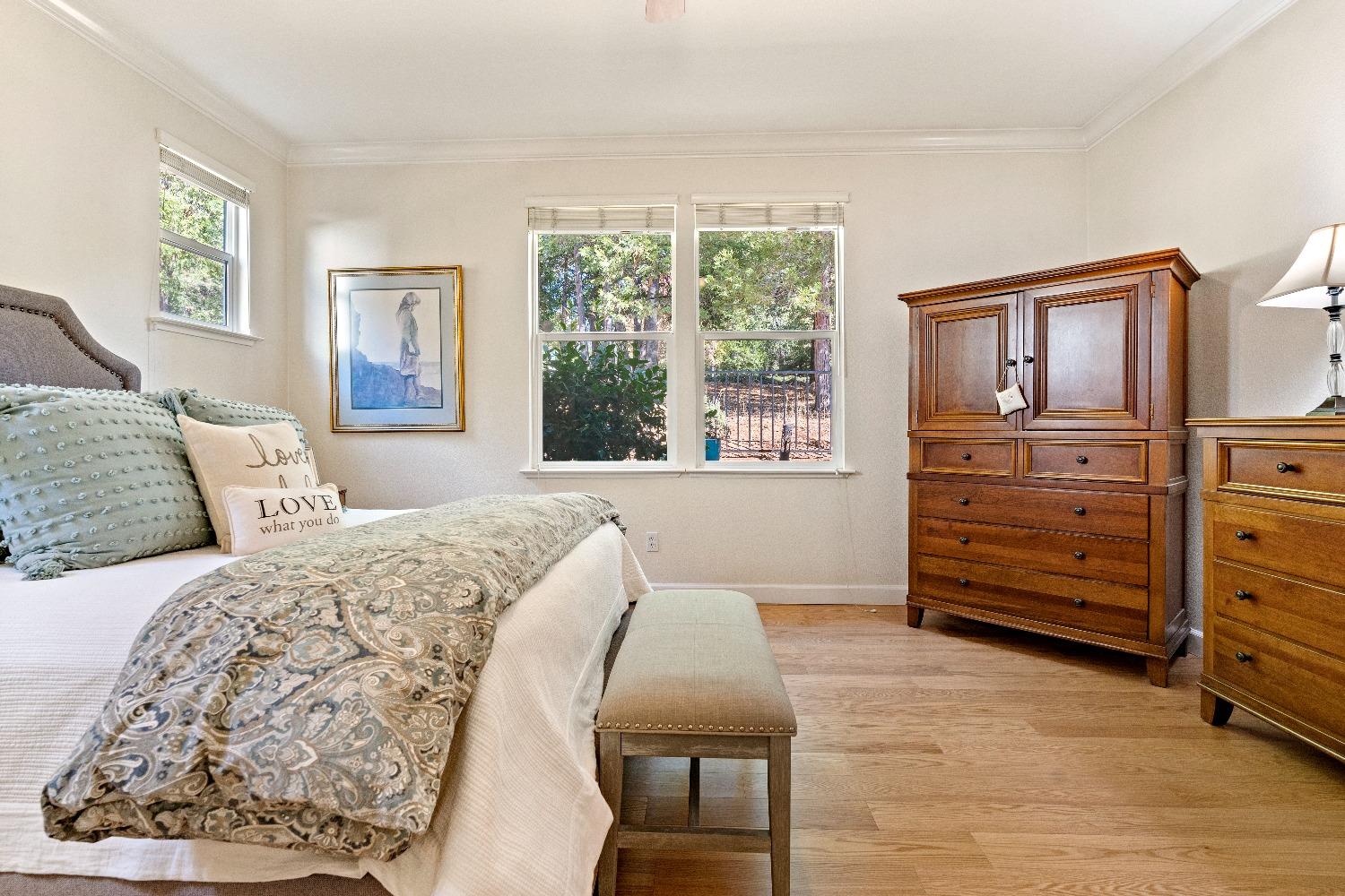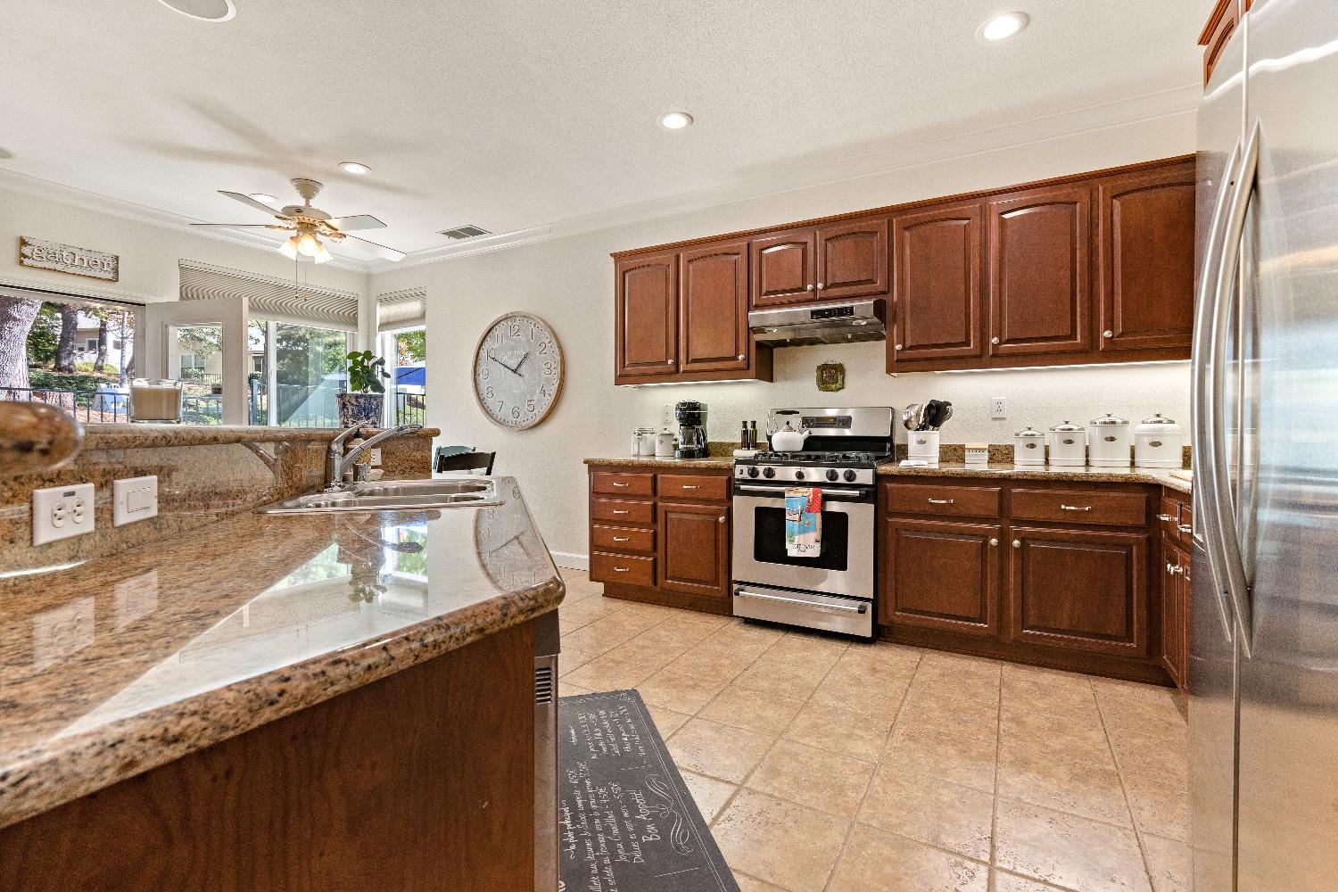 Immediately feel the warmth of this spacious single level home. Thoughtfully updated, this exceptional home is located in Eskaton a premiere 55+ community. in Grass Valley. This lush beautifully maintained neighborhood is conveniently located between historic downtown Grass Valley and downtown Nevada City and just minutes to medical offices and hospitals, shopping, dining options, movie theaters, community activities and events, and easy access to highway 49. The open floor plan offers an upgraded kitchen with an abundance of cabinets, great room/dining area, a large formal dining room/office option, a spacious primary suite with a walk-in closet plus a roomy secondary bedroom with a guest bathroom nearby. The backyard features a roomy, fully fenced patio surrounded by lush greenery offering the perfect space for your pet or to relax or entertain family and friends. 2 Bedrooms, 2 Full Baths Approximately 1592 Sq. Ft. Approximately 5227 Sq. Ft. Lot Built in 2003 Attached 2 Car Garage with built-in storage Generous open floorplan Roomy Kitchen with stainless appliances and lots of cabinets Formal Dining Room/Office/Den option Large built-in Buffet Indoor Laundry Room with storage Cozy gas fireplace Solid surface flooring throughout.