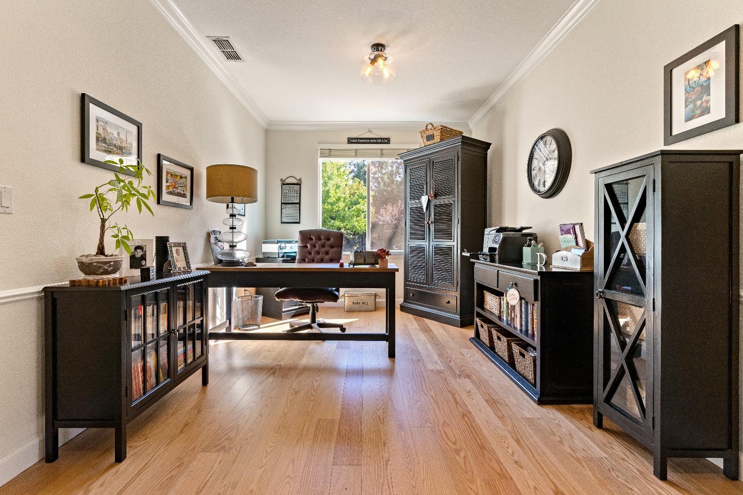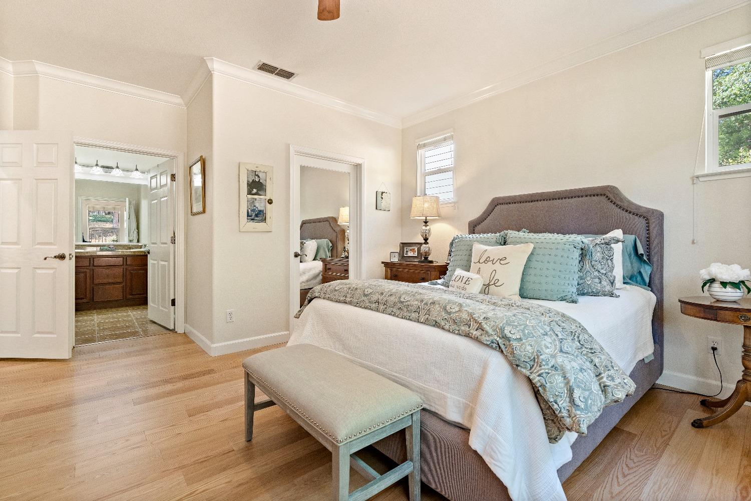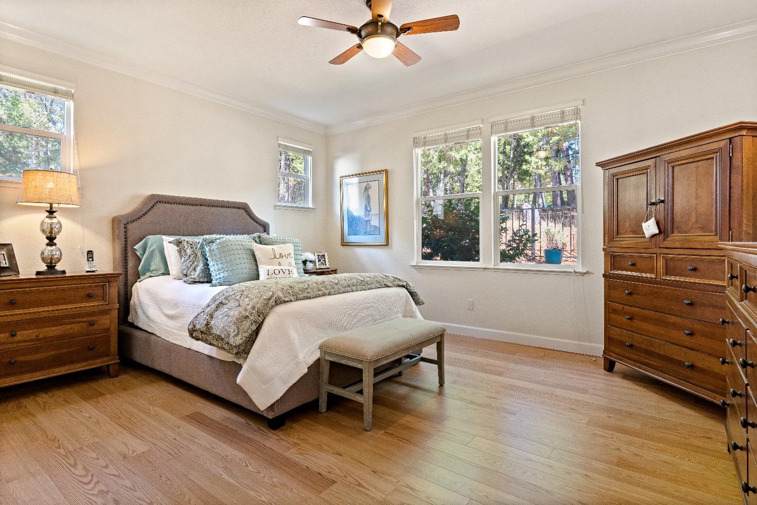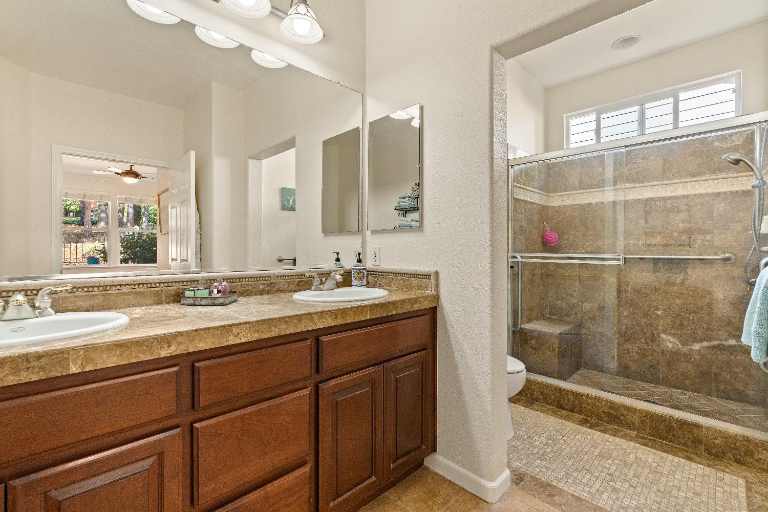 Immediately feel the warmth of this spacious single level home. Thoughtfully updated, this exceptional home is located in Eskaton a premiere 55+ community. in Grass Valley. This lush beautifully maintained neighborhood is conveniently located between historic downtown Grass Valley and downtown Nevada City and just minutes to medical offices and hospitals, shopping, dining options, movie theaters, community activities and events, and easy access to highway 49. The open floor plan offers an upgraded kitchen with an abundance of cabinets, great room/dining area, a large formal dining room/office option, a spacious primary suite with a walk-in closet plus a roomy secondary bedroom with a guest bathroom nearby. The backyard features a roomy, fully fenced patio surrounded by lush greenery offering the perfect space for your pet or to relax or entertain family and friends. 2 Bedrooms, 2 Full Baths Approximately 1592 Sq. Ft. Approximately 5227 Sq. Ft. Lot Built in 2003 Attached 2 Car Garage with built-in storage Generous open floorplan Roomy Kitchen with stainless appliances and lots of cabinets Formal Dining Room/Office/Den option Large built-in Buffet Indoor Laundry Room with storage Cozy gas fireplace Solid surface flooring throughout.