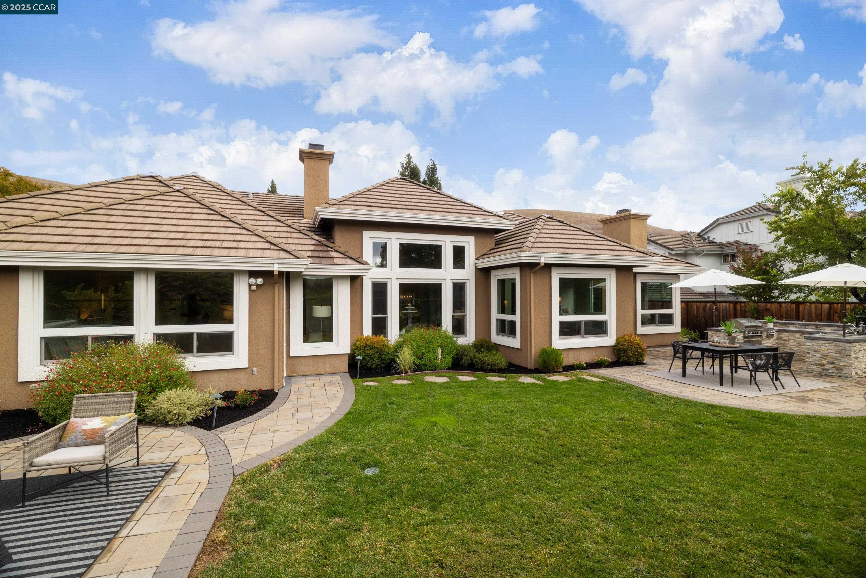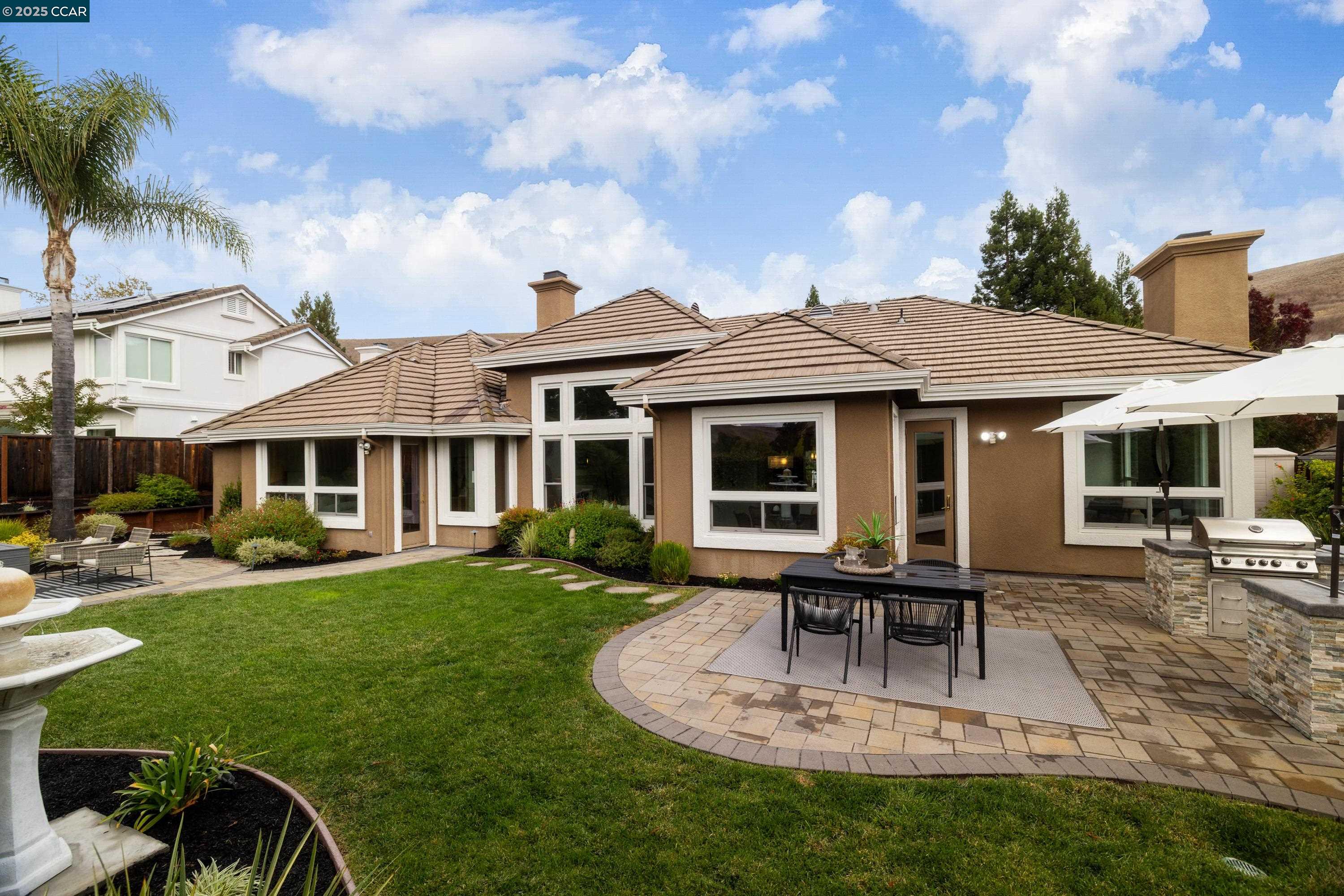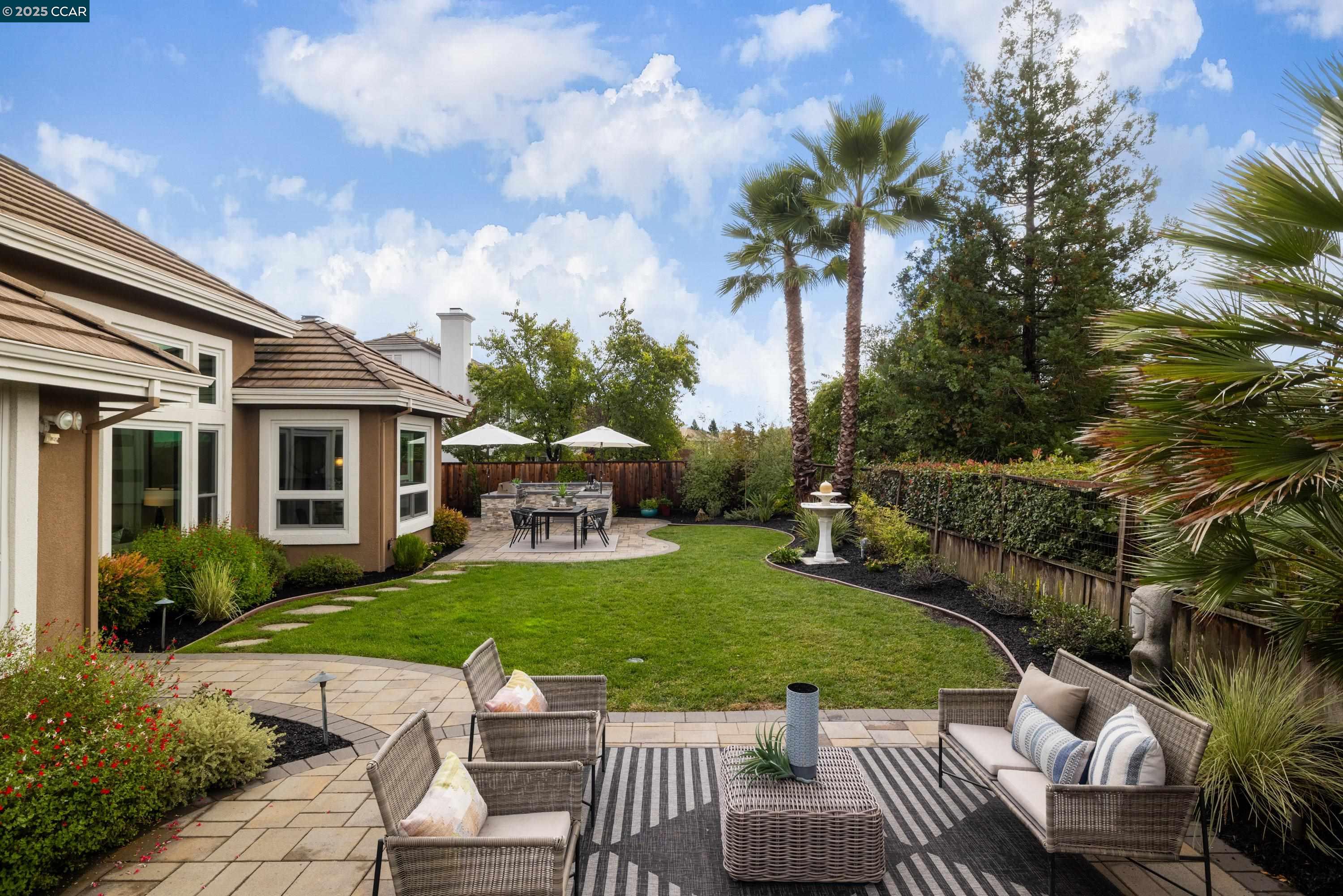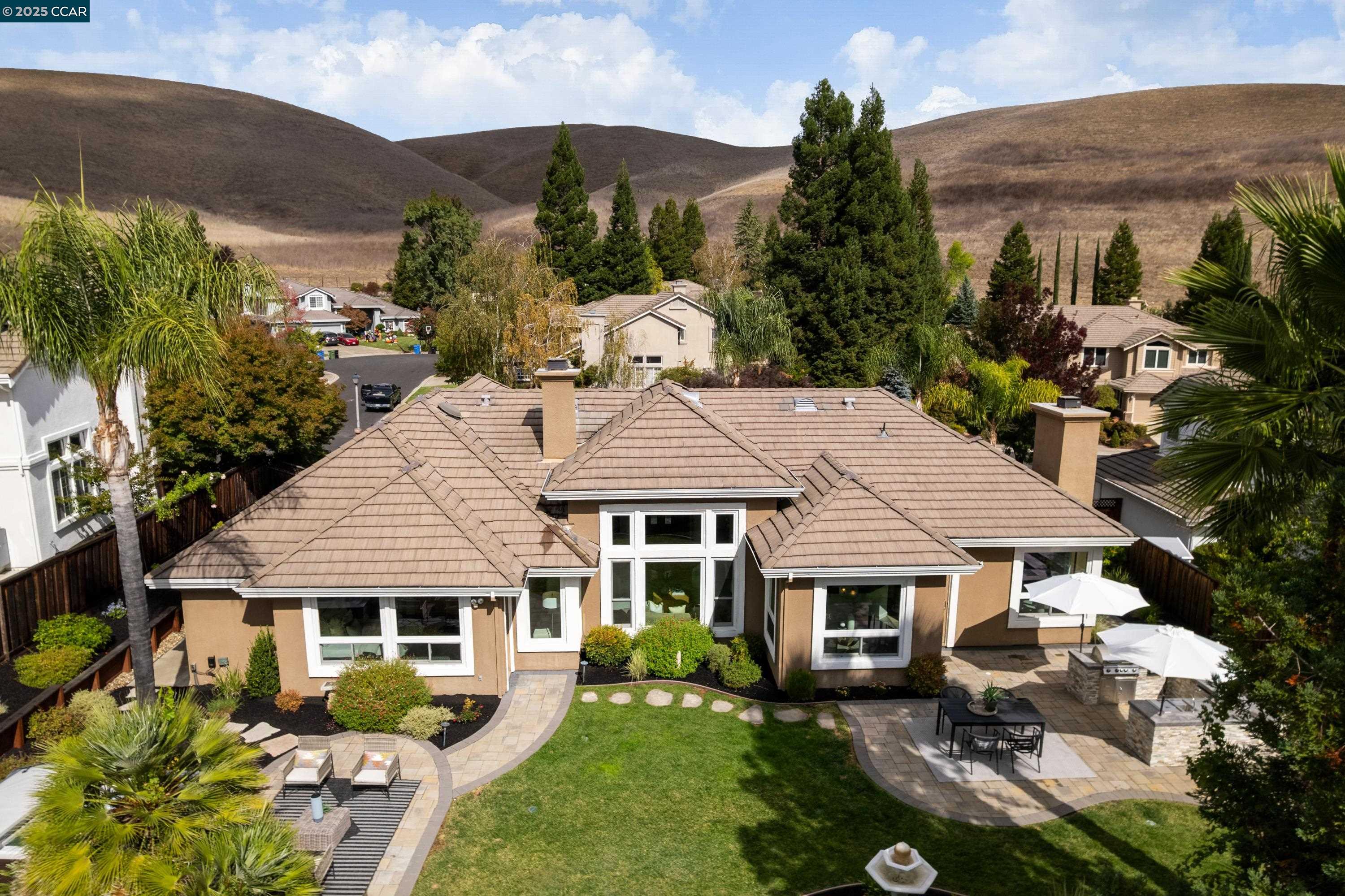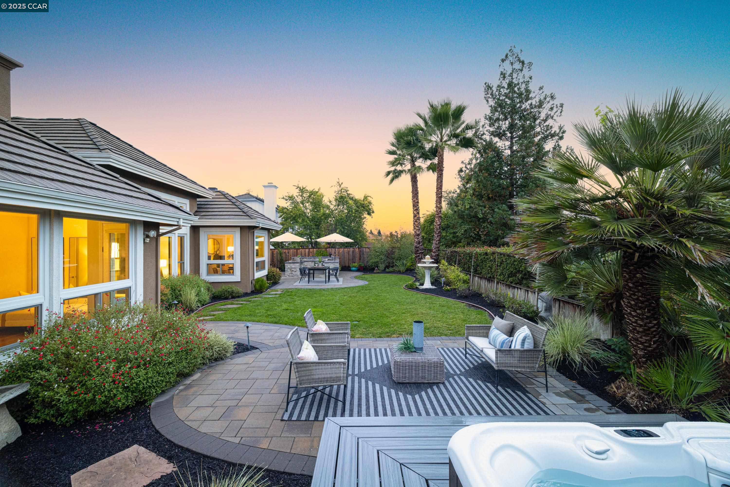 EXCEPTIONAL SINGLE STORY HOME. Impeccably upgraded home that seamlessly combines quality materials with an ideal layout. Featuring four generous bedrooms, one of which is currently utilized as a home office, this residence also offers formal living and dining rooms, a spacious family room, an oversized laundry room complete with a utility sink, and a convenient 3-car garage. Convenient location and award winning schools! The home showcases stylish upgrades, including engineered wood and tile flooring, complemented by plush new carpeting in the living room. The eat-in chef's kitchen is equipped with a commercial-grade gas cooktop, double convection ovens, and granite countertops, and it flows effortlessly into the family room. The expansive primary suite boasts a beautifully remodeled bathroom with two walk-in closets, accompanied by three additional roomy bedrooms. High ceilings and large windows throughout the property flood the space with natural light, enhancing the stunning views and warm ambiance that make this home truly special. Enjoy gorgeous sunsets as you host get togethers with the fully equipped outdoor kitchen and relaxing hot tub. Attractive low maintenance, drought resistant landscaping and newer exterior paint offer a property you'll be proud to call home.