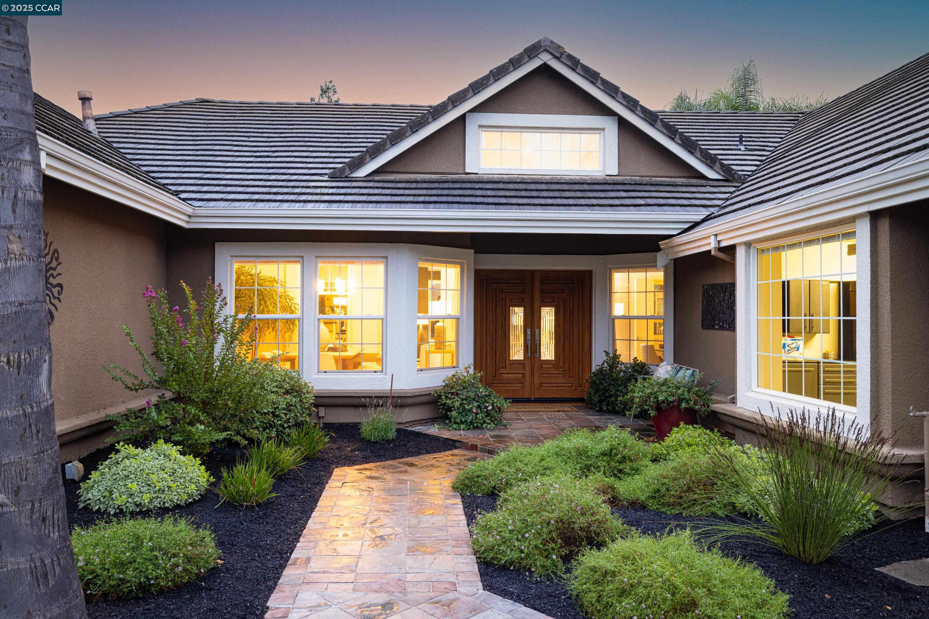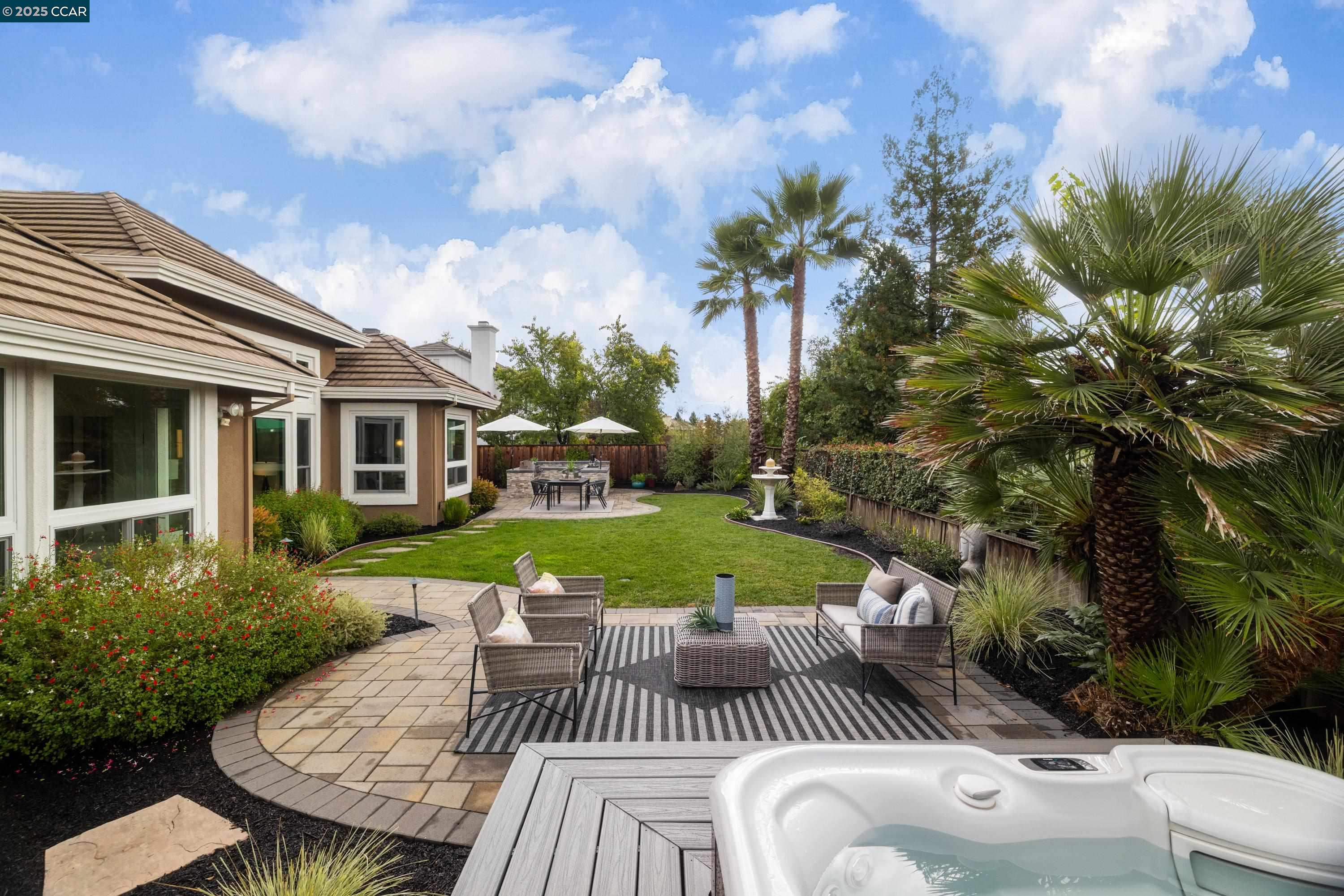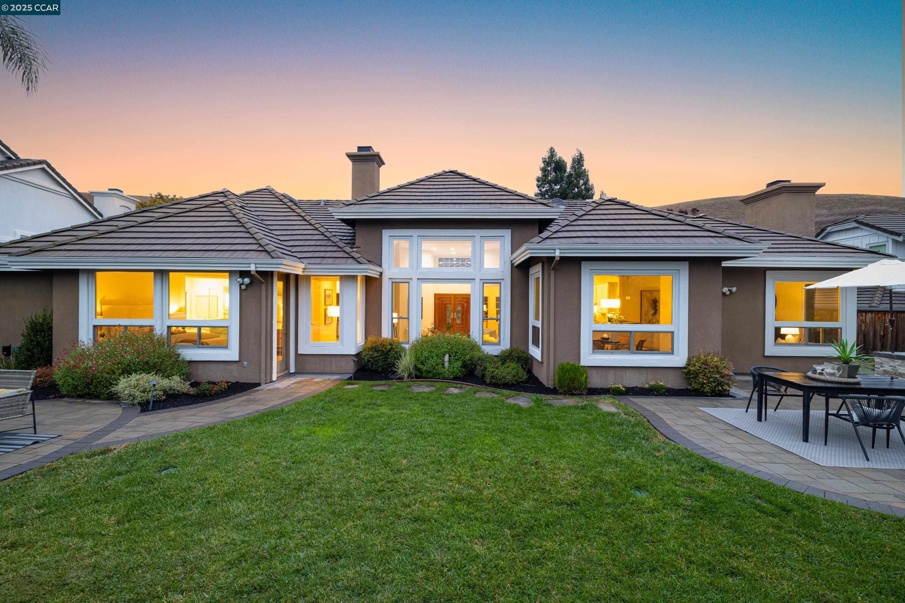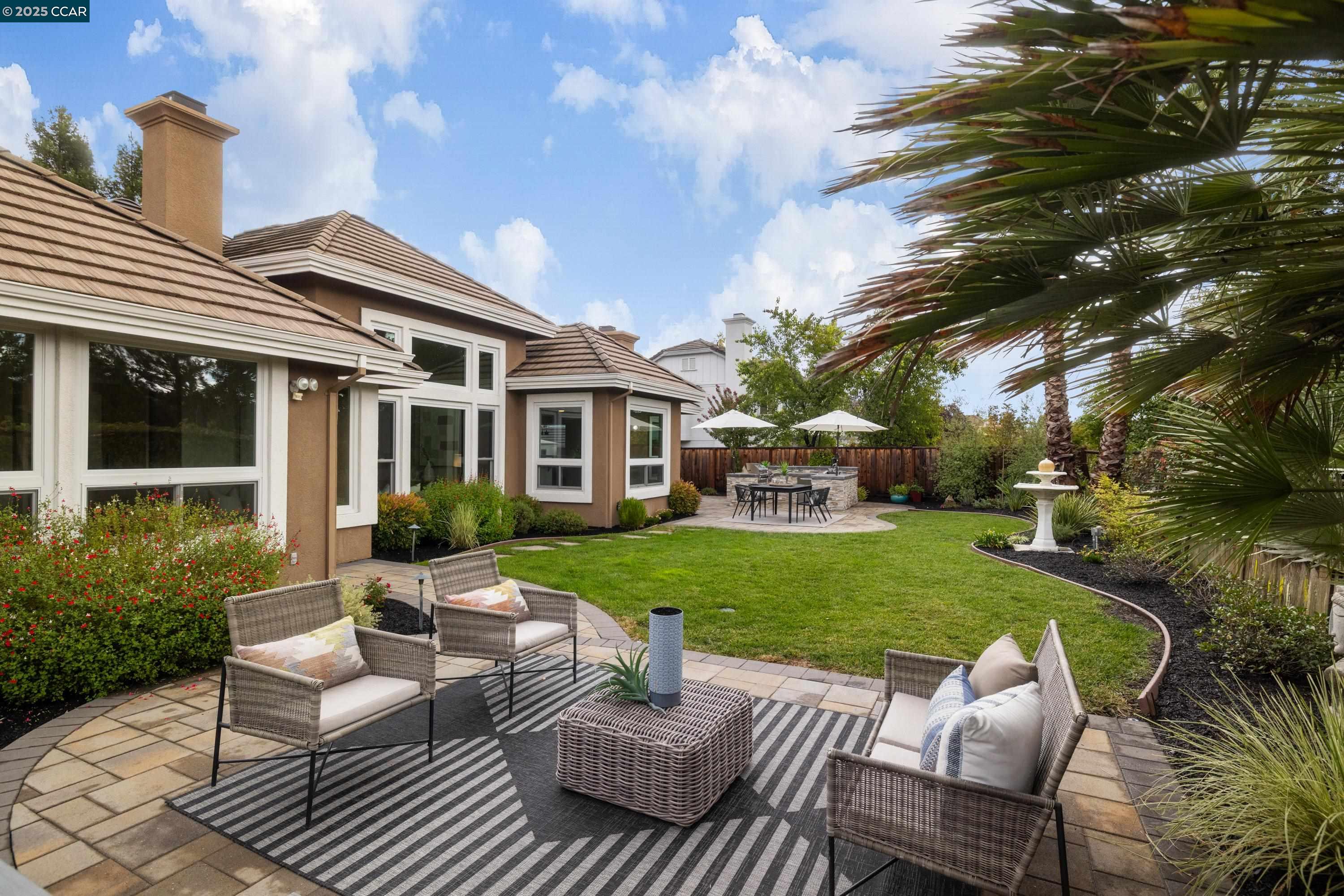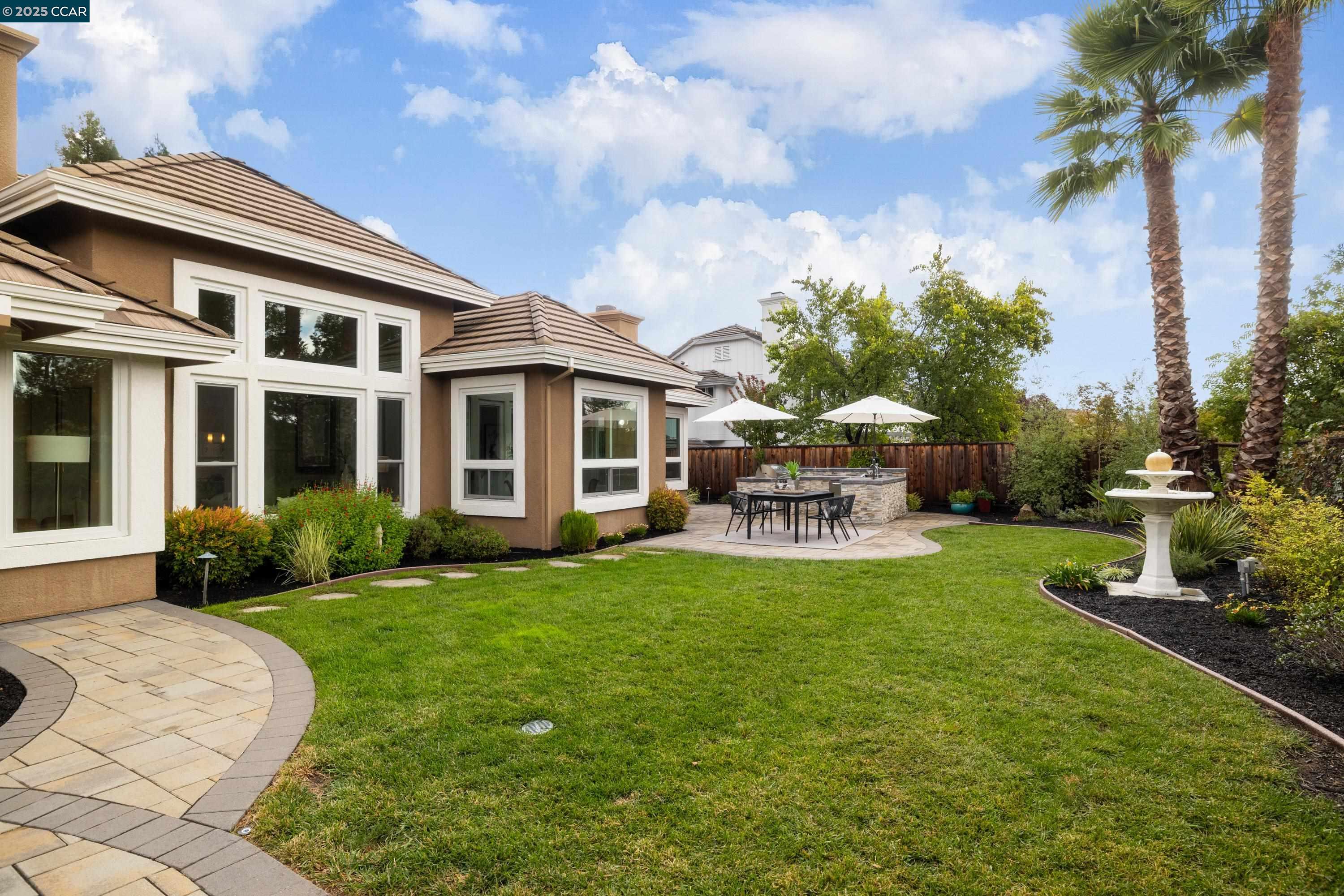 EXCEPTIONAL SINGLE STORY HOME. Impeccably upgraded home that seamlessly combines quality materials with an ideal layout. Featuring four generous bedrooms, one of which is currently utilized as a home office, this residence also offers formal living and dining rooms, a spacious family room, an oversized laundry room complete with a utility sink, and a convenient 3-car garage. Convenient location and award winning schools! The home showcases stylish upgrades, including engineered wood and tile flooring, complemented by plush new carpeting in the living room. The eat-in chef's kitchen is equipped with a commercial-grade gas cooktop, double convection ovens, and granite countertops, and it flows effortlessly into the family room. The expansive primary suite boasts a beautifully remodeled bathroom with two walk-in closets, accompanied by three additional roomy bedrooms. High ceilings and large windows throughout the property flood the space with natural light, enhancing the stunning views and warm ambiance that make this home truly special. Enjoy gorgeous sunsets as you host get togethers with the fully equipped outdoor kitchen and relaxing hot tub. Attractive low maintenance, drought resistant landscaping and newer exterior paint offer a property you'll be proud to call home.