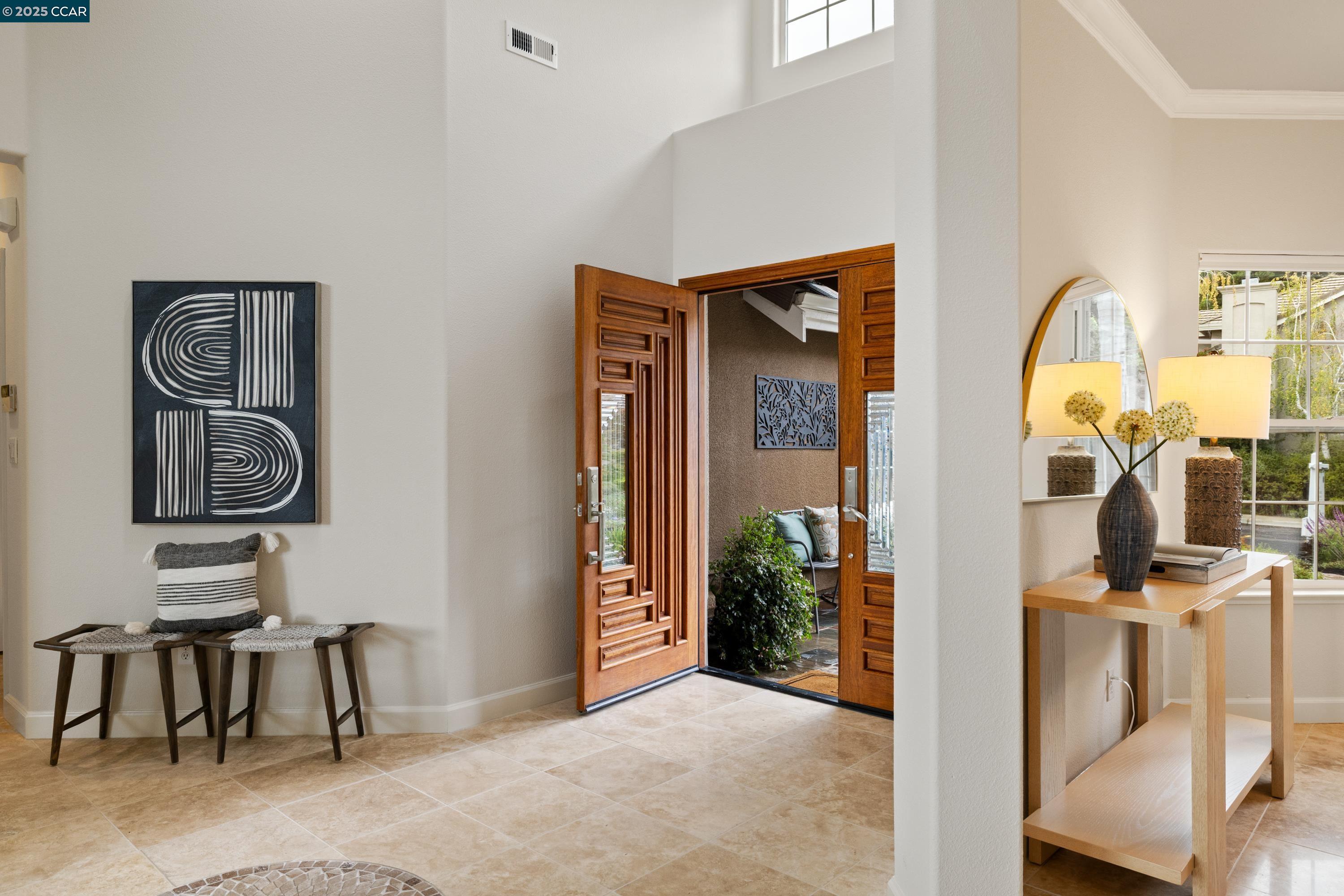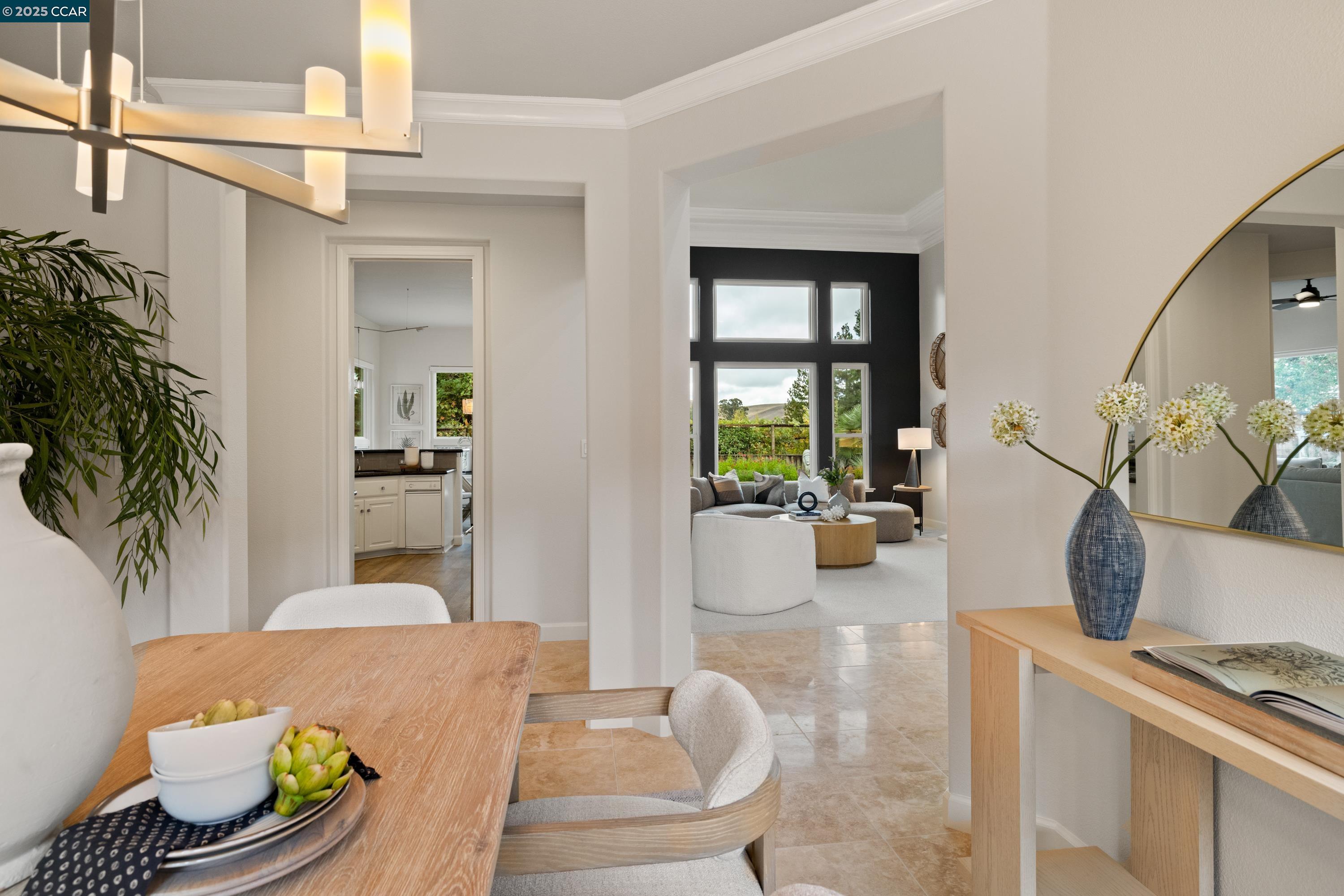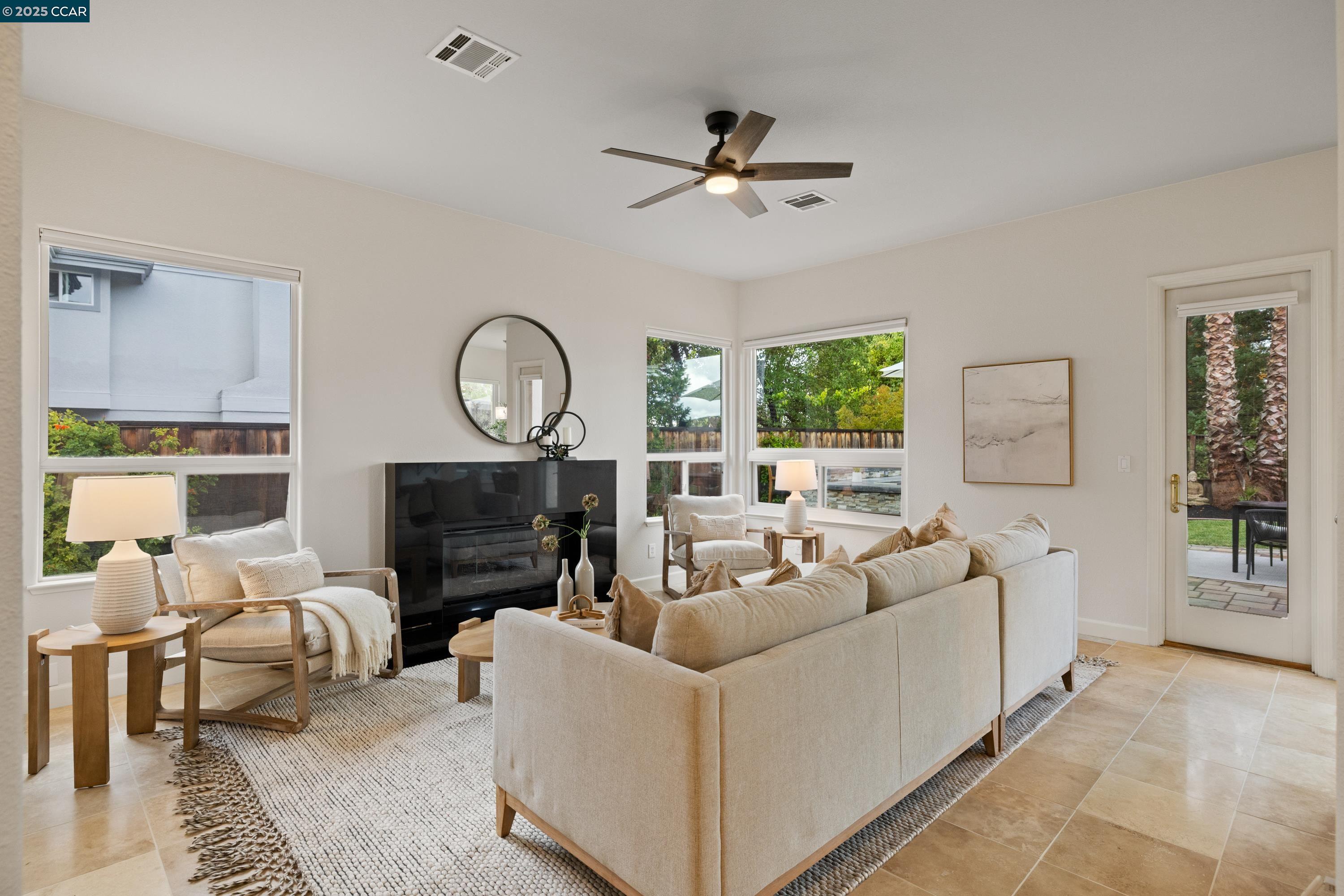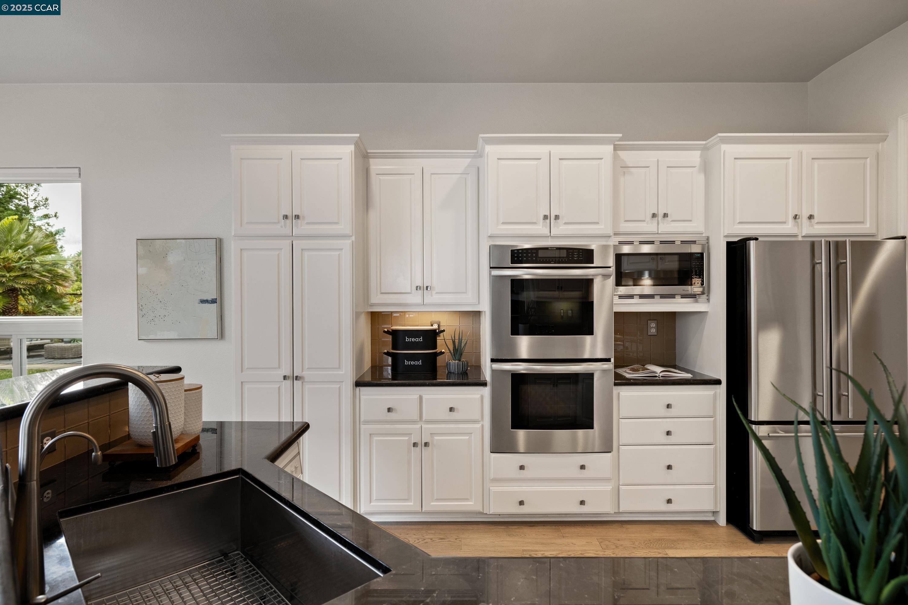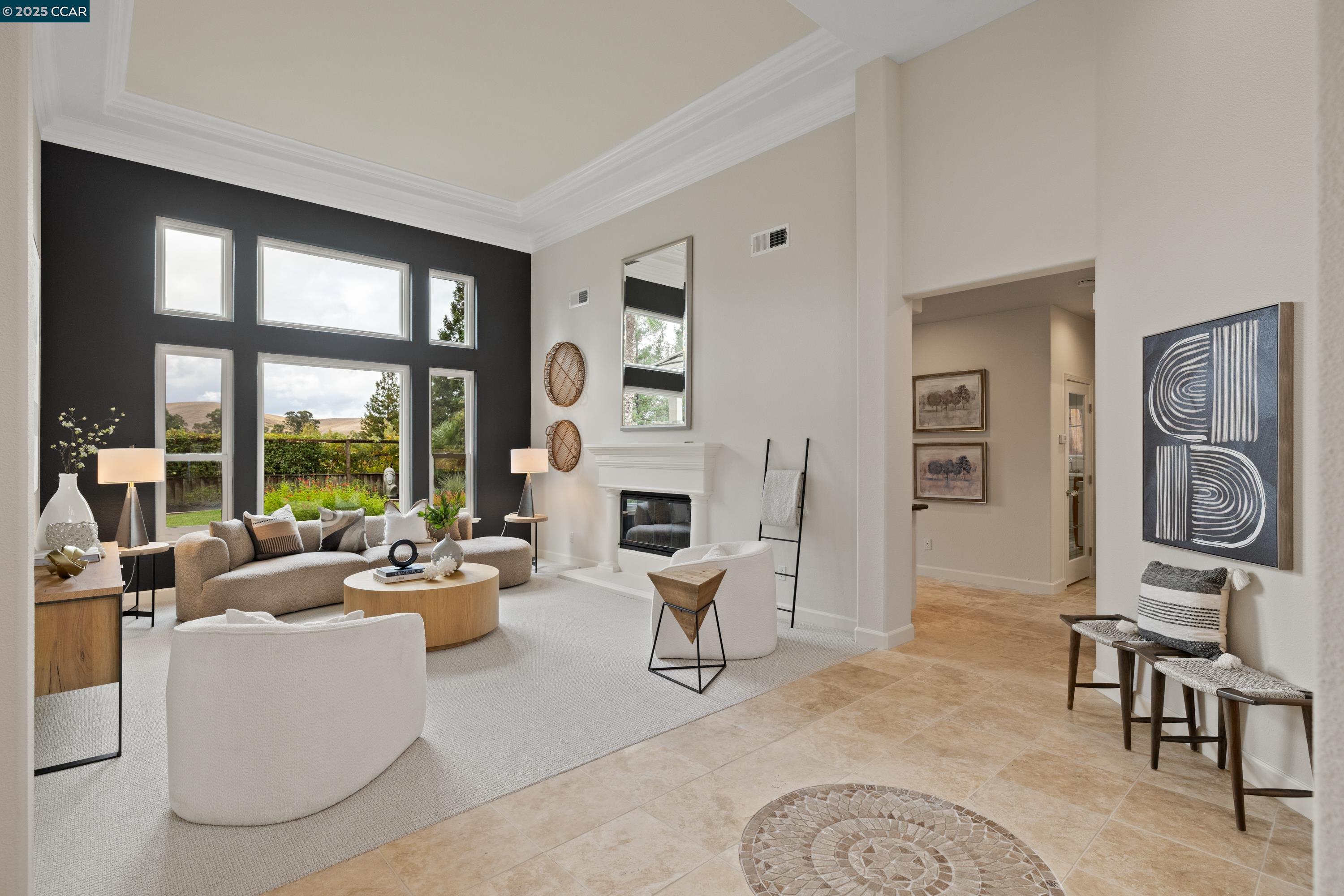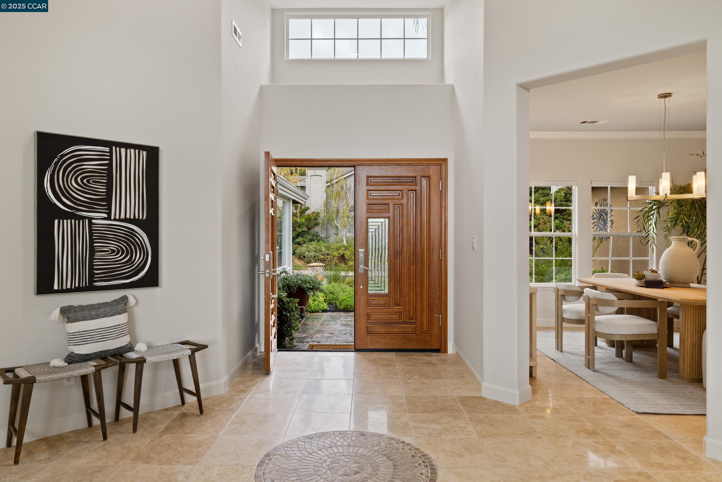 EXCEPTIONAL SINGLE STORY HOME. Impeccably upgraded home that seamlessly combines quality materials with an ideal layout. Featuring four generous bedrooms, one of which is currently utilized as a home office, this residence also offers formal living and dining rooms, a spacious family room, an oversized laundry room complete with a utility sink, and a convenient 3-car garage. Convenient location and award winning schools! The home showcases stylish upgrades, including engineered wood and tile flooring, complemented by plush new carpeting in the living room. The eat-in chef's kitchen is equipped with a commercial-grade gas cooktop, double convection ovens, and granite countertops, and it flows effortlessly into the family room. The expansive primary suite boasts a beautifully remodeled bathroom with two walk-in closets, accompanied by three additional roomy bedrooms. High ceilings and large windows throughout the property flood the space with natural light, enhancing the stunning views and warm ambiance that make this home truly special. Enjoy gorgeous sunsets as you host get togethers with the fully equipped outdoor kitchen and relaxing hot tub. Attractive low maintenance, drought resistant landscaping and newer exterior paint offer a property you'll be proud to call home.