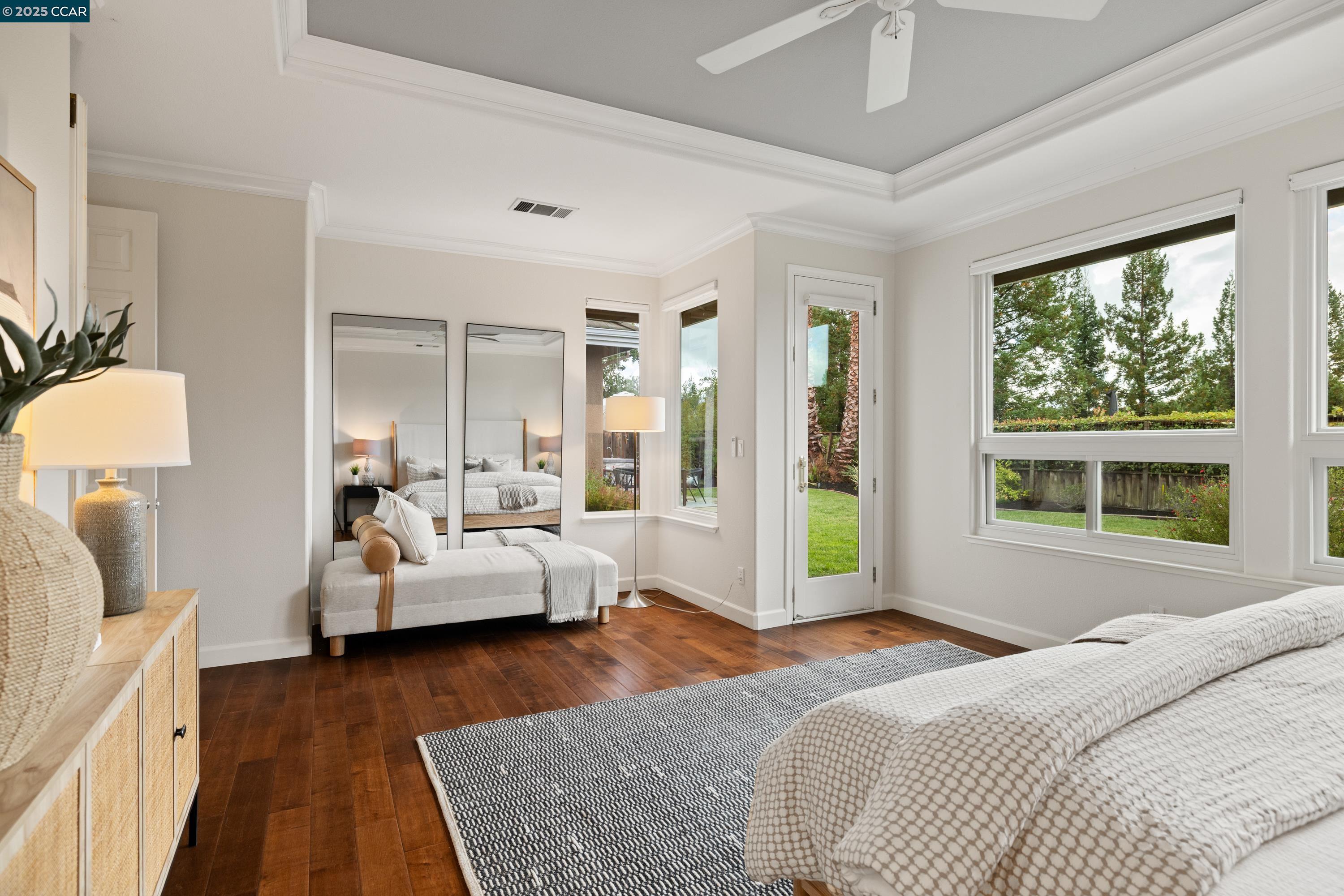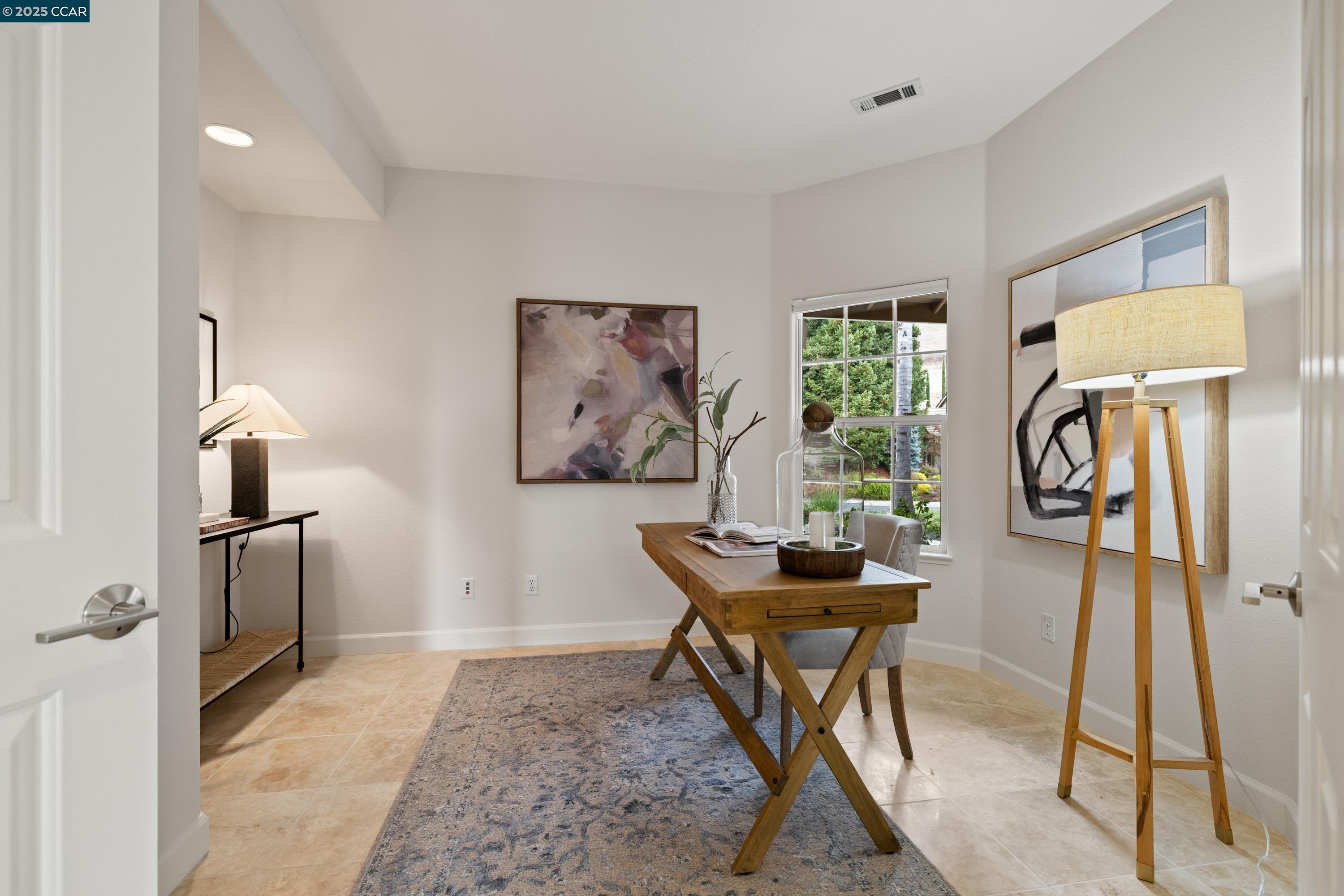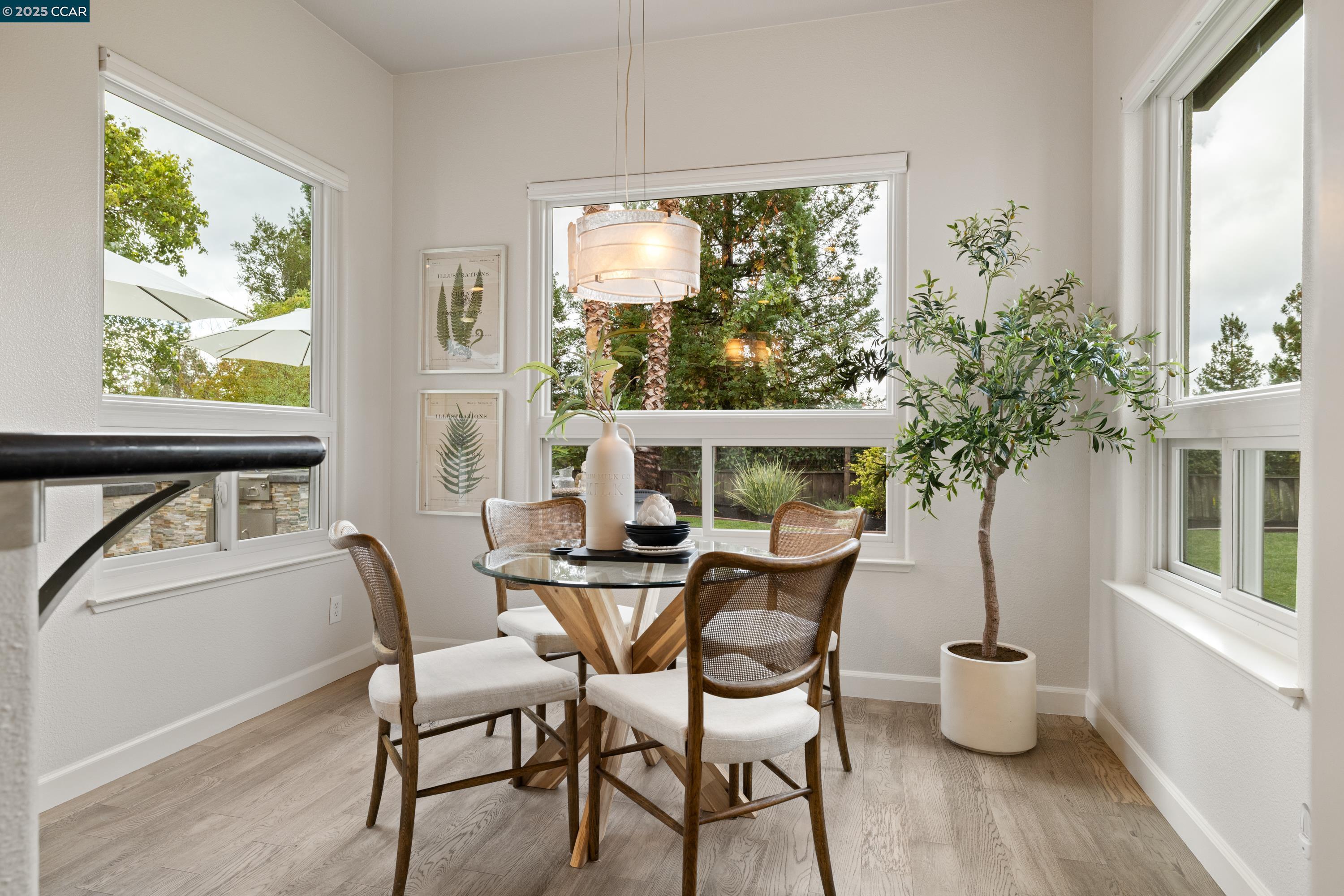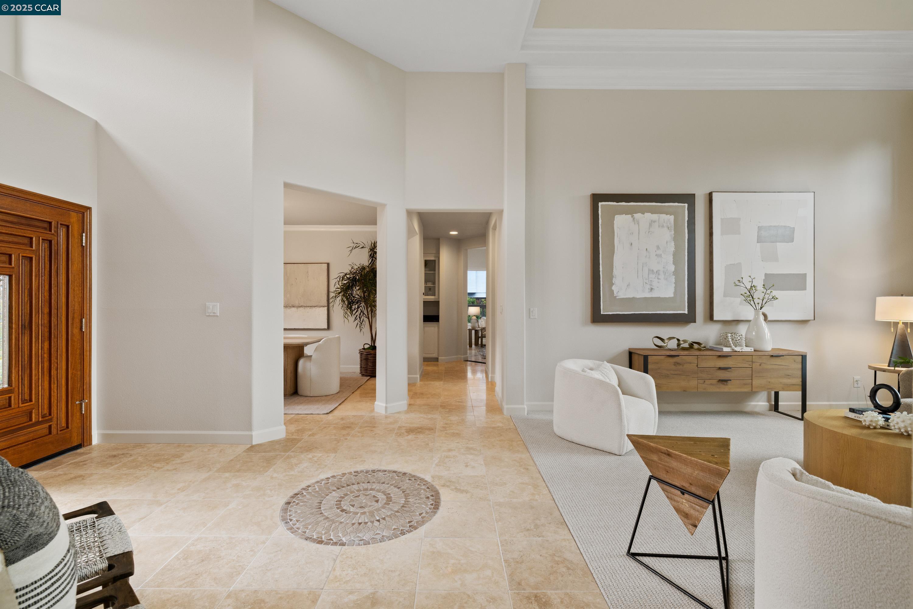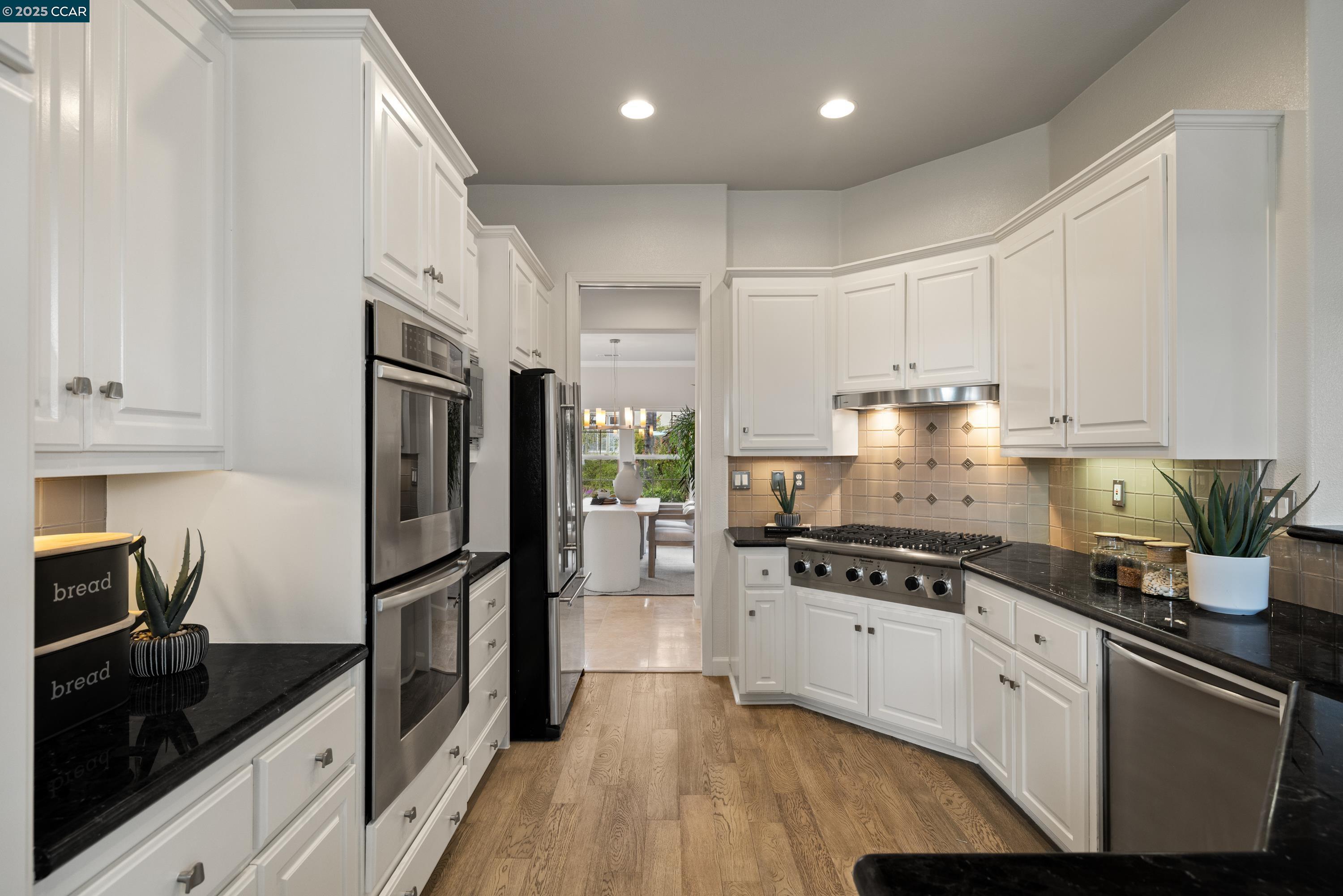 EXCEPTIONAL SINGLE STORY HOME. Impeccably upgraded home that seamlessly combines quality materials with an ideal layout. Featuring four generous bedrooms, one of which is currently utilized as a home office, this residence also offers formal living and dining rooms, a spacious family room, an oversized laundry room complete with a utility sink, and a convenient 3-car garage. Convenient location and award winning schools! The home showcases stylish upgrades, including engineered wood and tile flooring, complemented by plush new carpeting in the living room. The eat-in chef's kitchen is equipped with a commercial-grade gas cooktop, double convection ovens, and granite countertops, and it flows effortlessly into the family room. The expansive primary suite boasts a beautifully remodeled bathroom with two walk-in closets, accompanied by three additional roomy bedrooms. High ceilings and large windows throughout the property flood the space with natural light, enhancing the stunning views and warm ambiance that make this home truly special. Enjoy gorgeous sunsets as you host get togethers with the fully equipped outdoor kitchen and relaxing hot tub. Attractive low maintenance, drought resistant landscaping and newer exterior paint offer a property you'll be proud to call home.