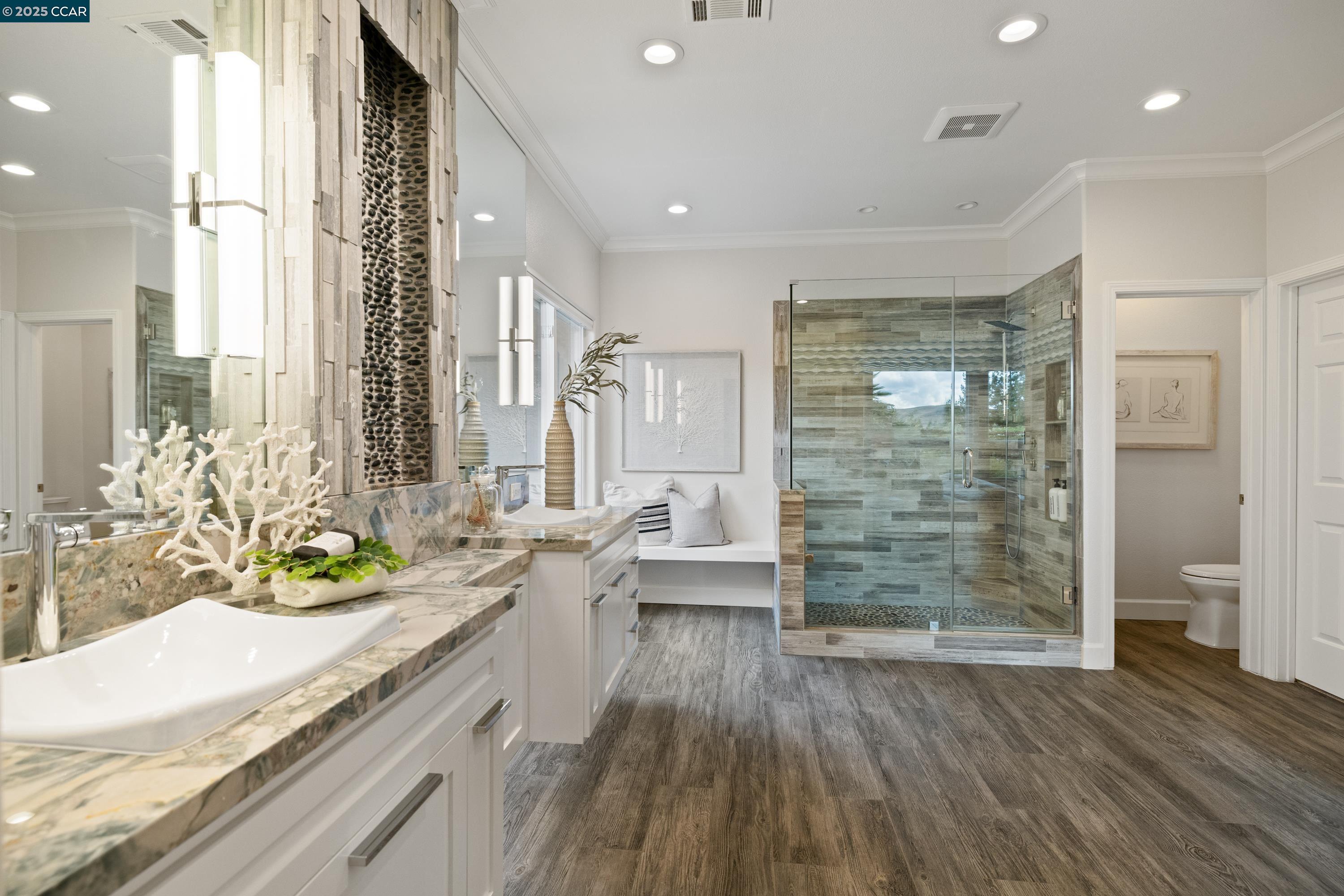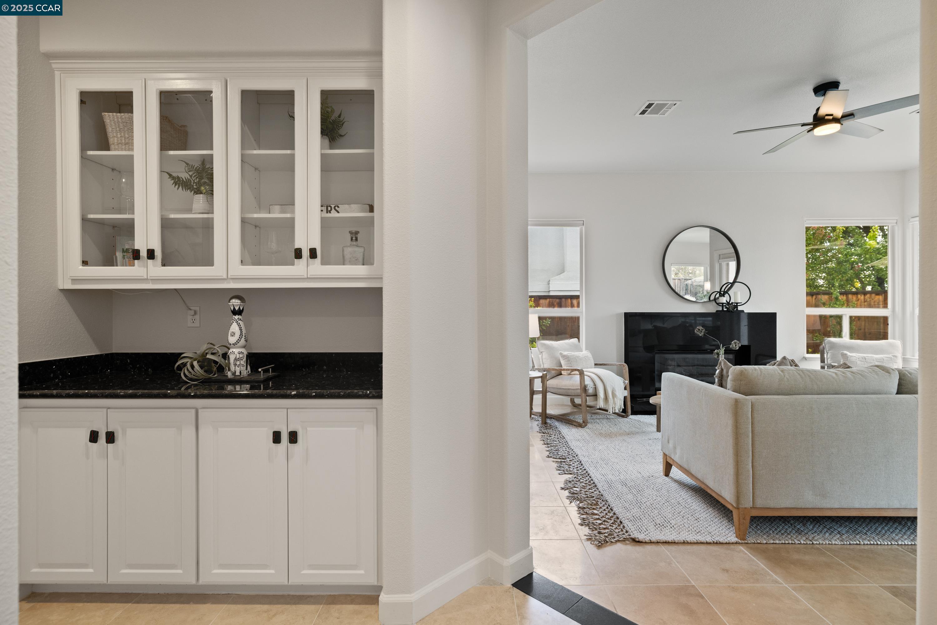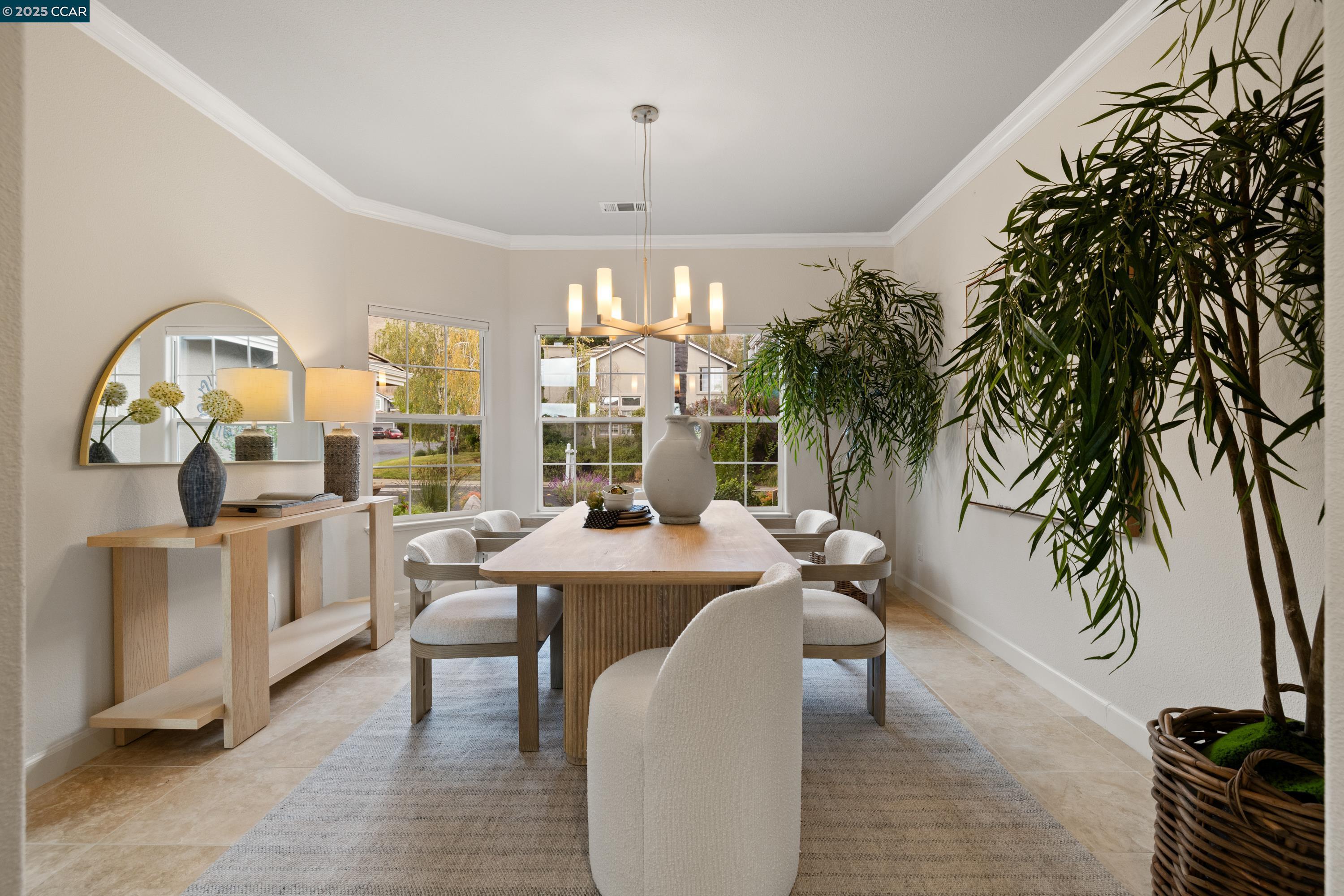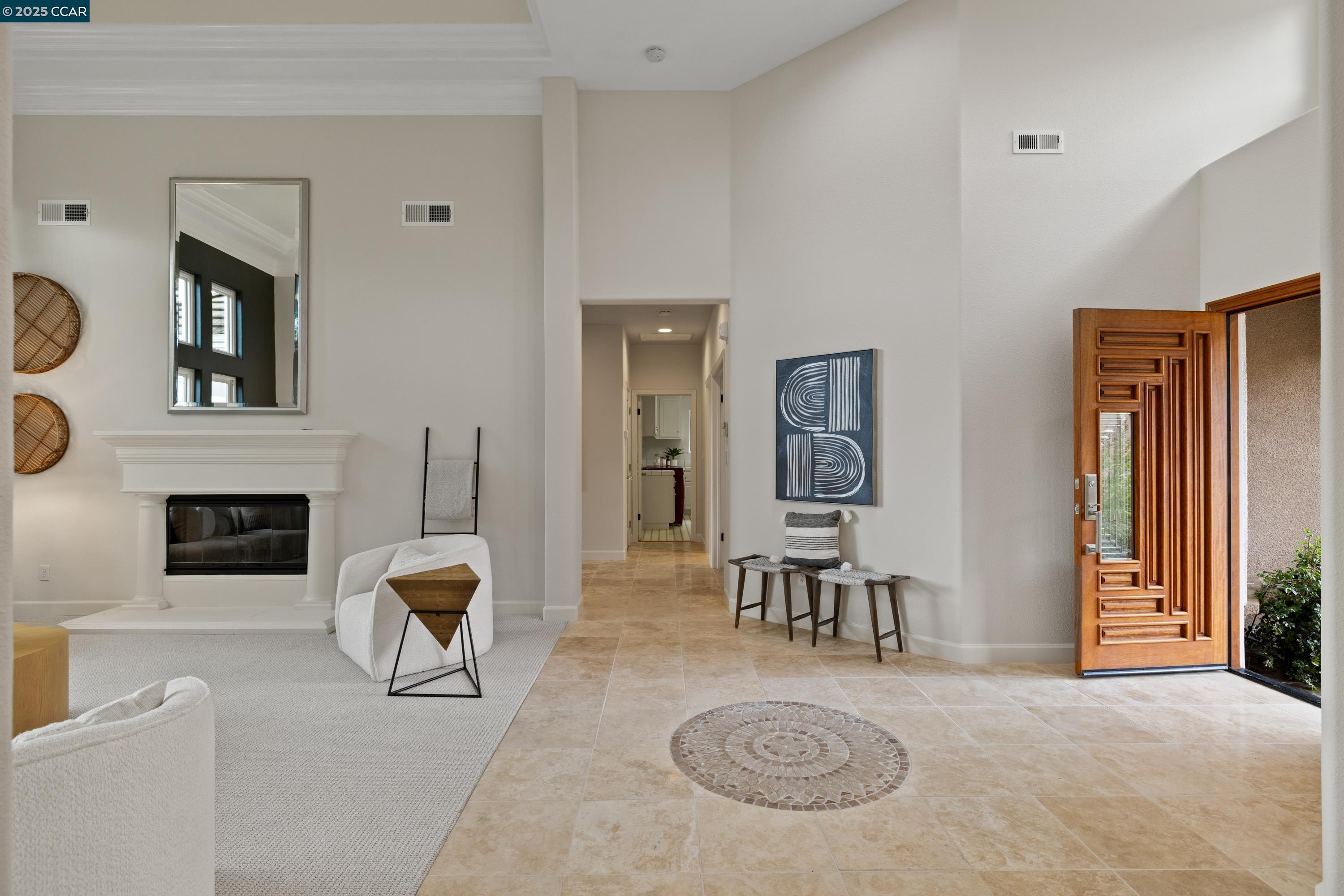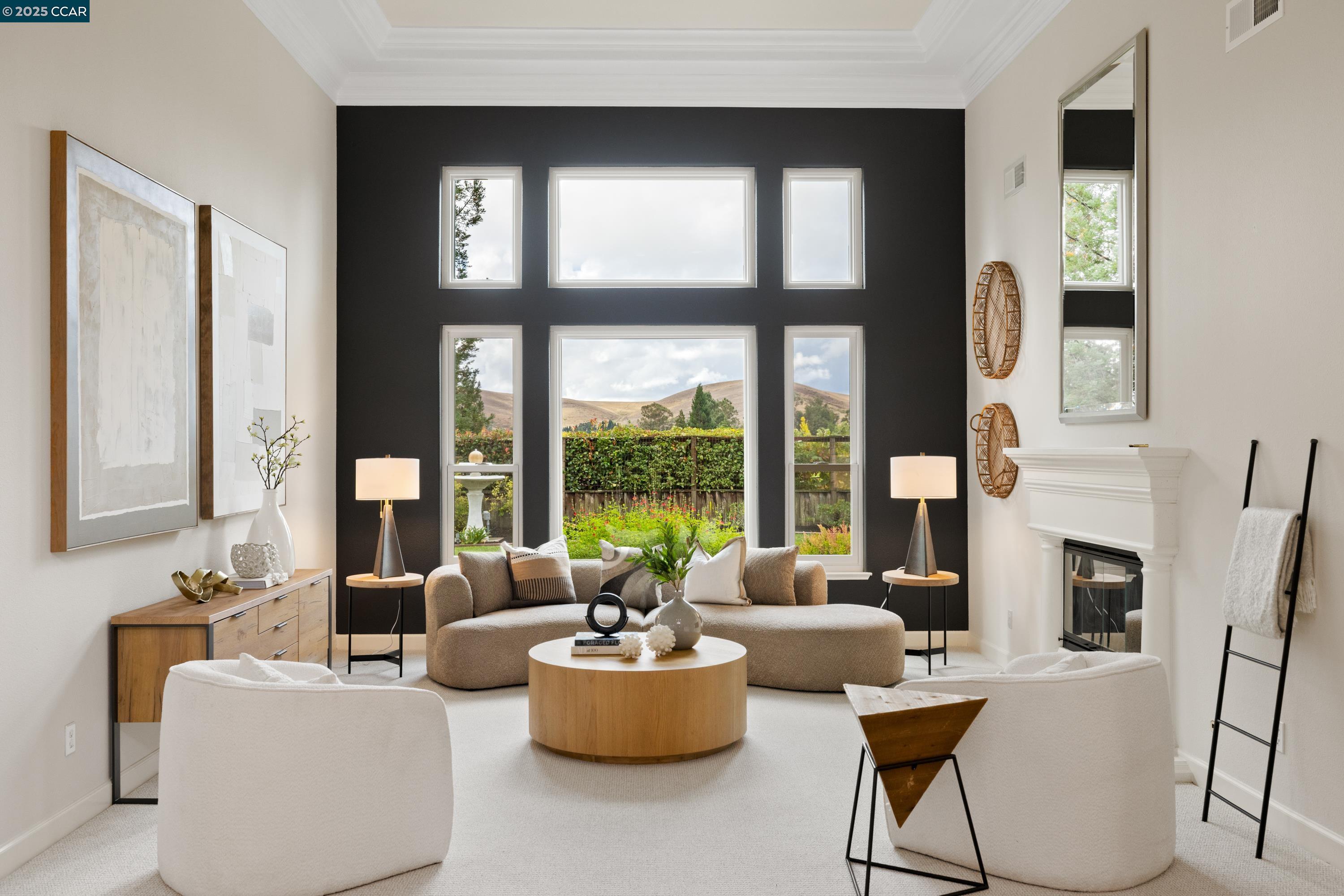 EXCEPTIONAL SINGLE STORY HOME. Impeccably upgraded home that seamlessly combines quality materials with an ideal layout. Featuring four generous bedrooms, one of which is currently utilized as a home office, this residence also offers formal living and dining rooms, a spacious family room, an oversized laundry room complete with a utility sink, and a convenient 3-car garage. Convenient location and award winning schools! The home showcases stylish upgrades, including engineered wood and tile flooring, complemented by plush new carpeting in the living room. The eat-in chef's kitchen is equipped with a commercial-grade gas cooktop, double convection ovens, and granite countertops, and it flows effortlessly into the family room. The expansive primary suite boasts a beautifully remodeled bathroom with two walk-in closets, accompanied by three additional roomy bedrooms. High ceilings and large windows throughout the property flood the space with natural light, enhancing the stunning views and warm ambiance that make this home truly special. Enjoy gorgeous sunsets as you host get togethers with the fully equipped outdoor kitchen and relaxing hot tub. Attractive low maintenance, drought resistant landscaping and newer exterior paint offer a property you'll be proud to call home.